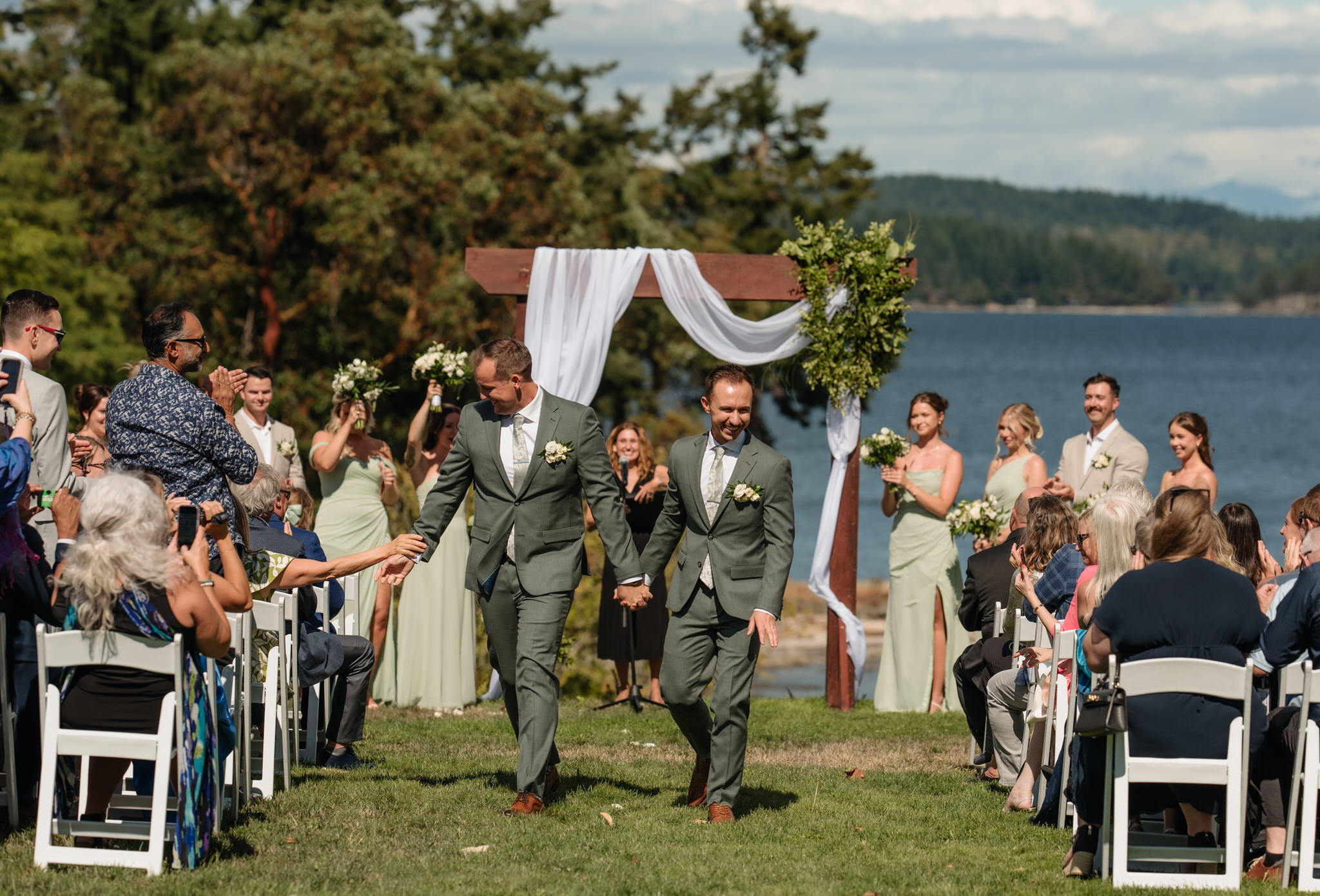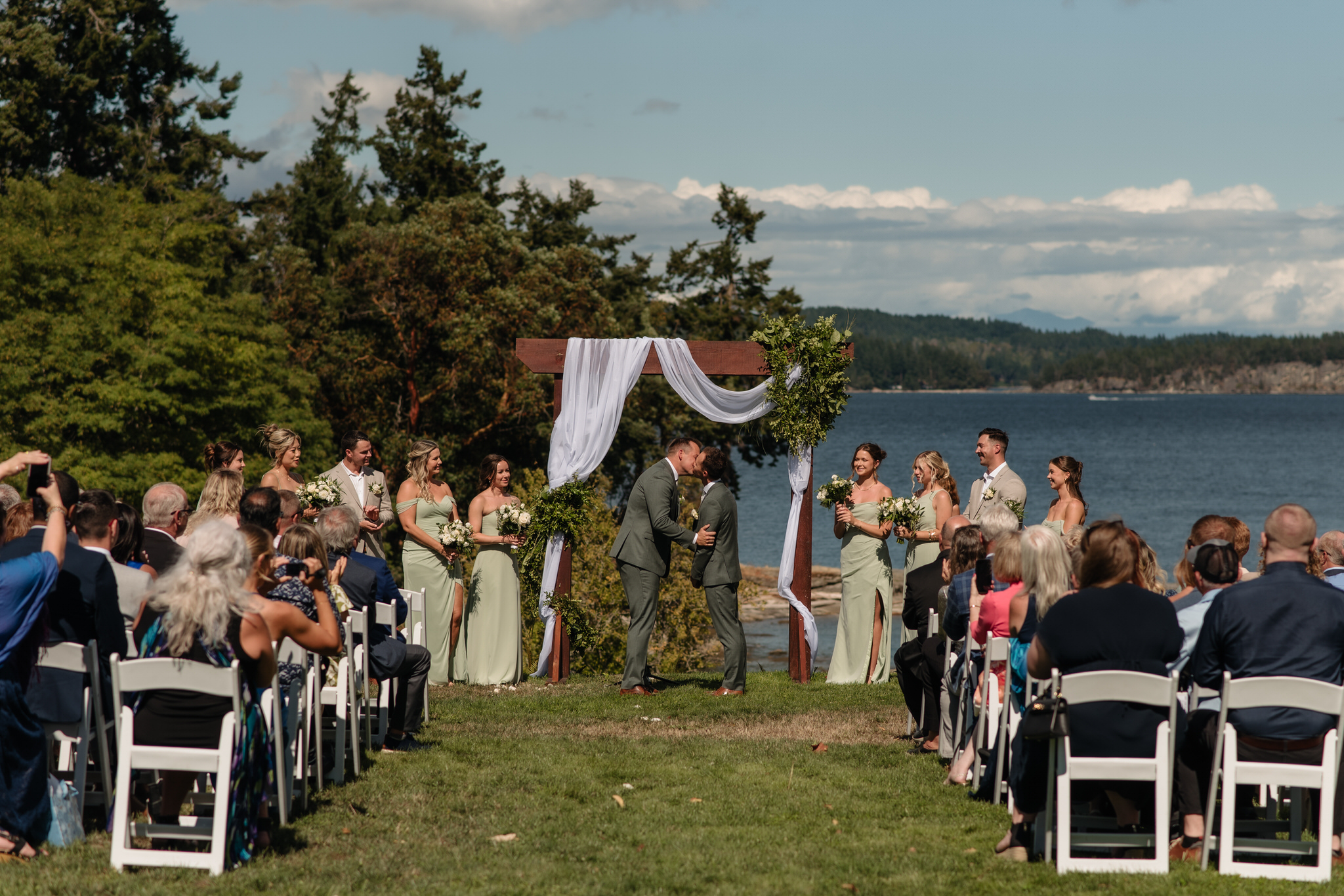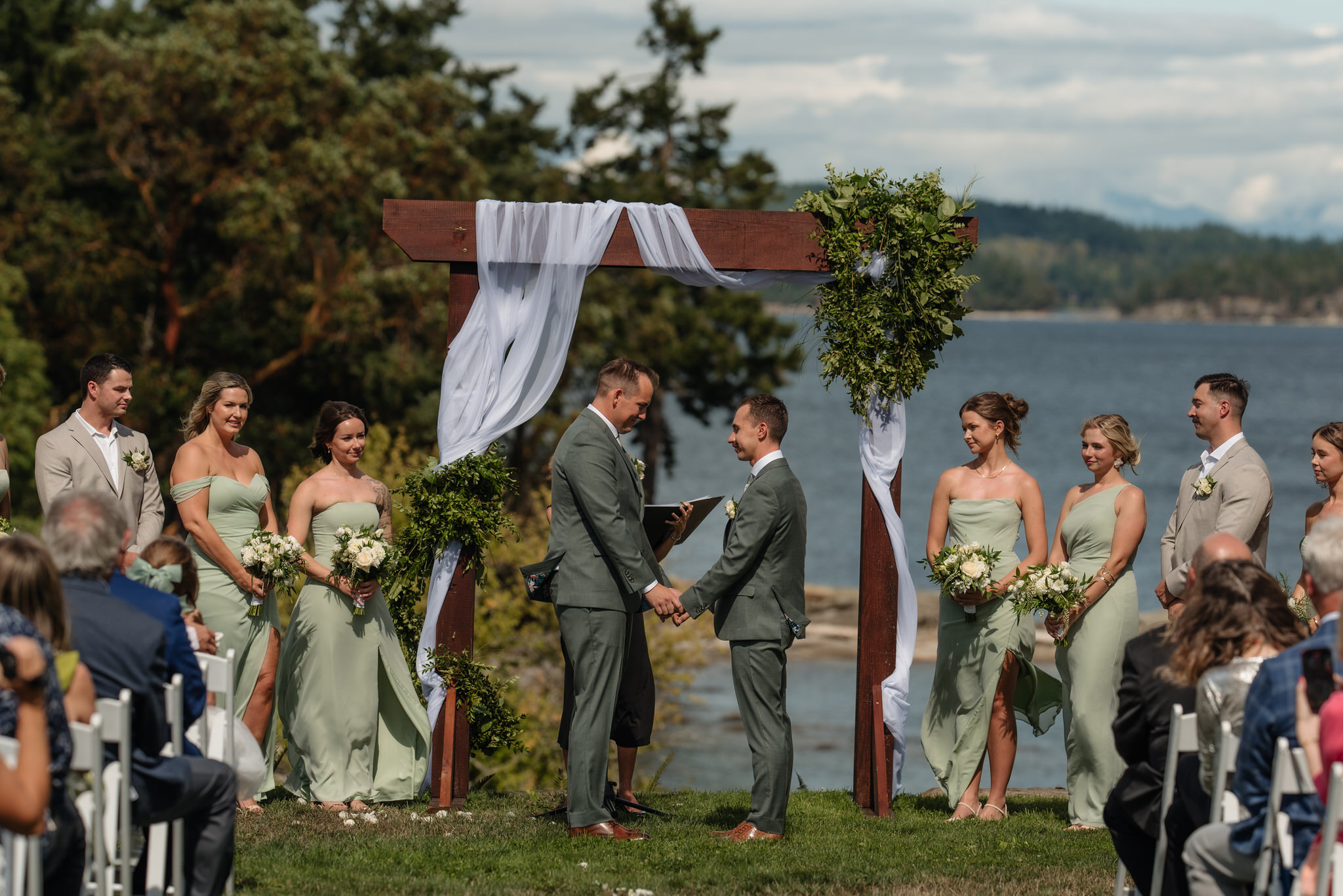 Held in August at Stefan’s family’s gorgeous oceanfront estate near Nanaimo, the day was everything a summer wedding should be: warm, welcoming, and full of happy tears. The property overlooked the water, giving the whole celebration that laid-back West Coast energy you can only get when the ocean’s right there in the background.