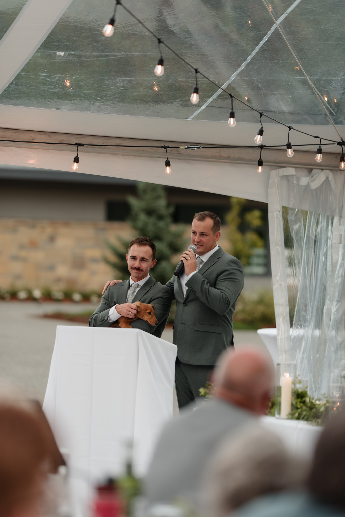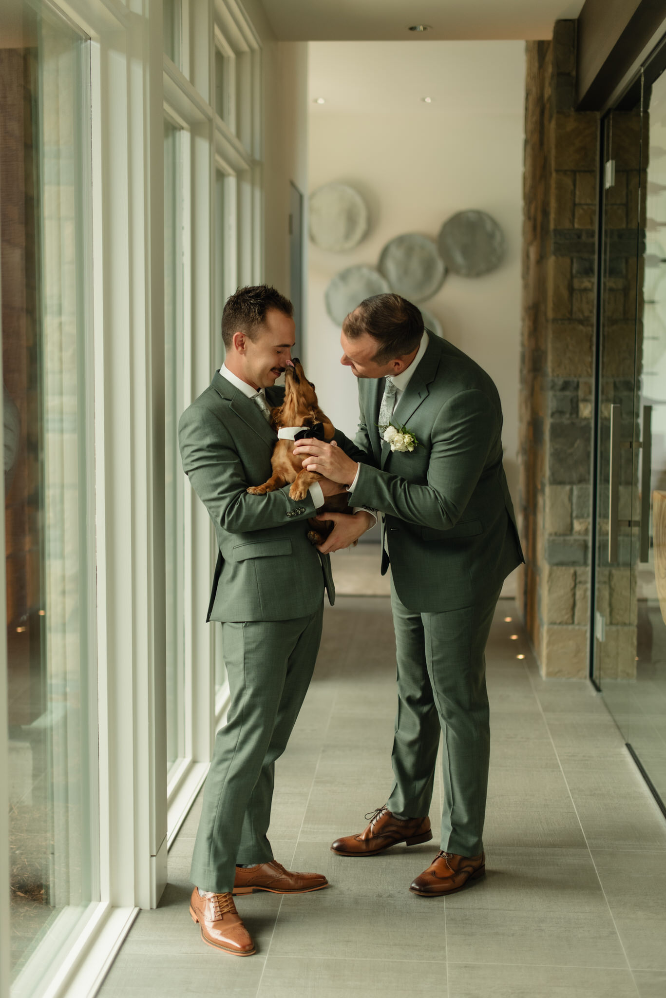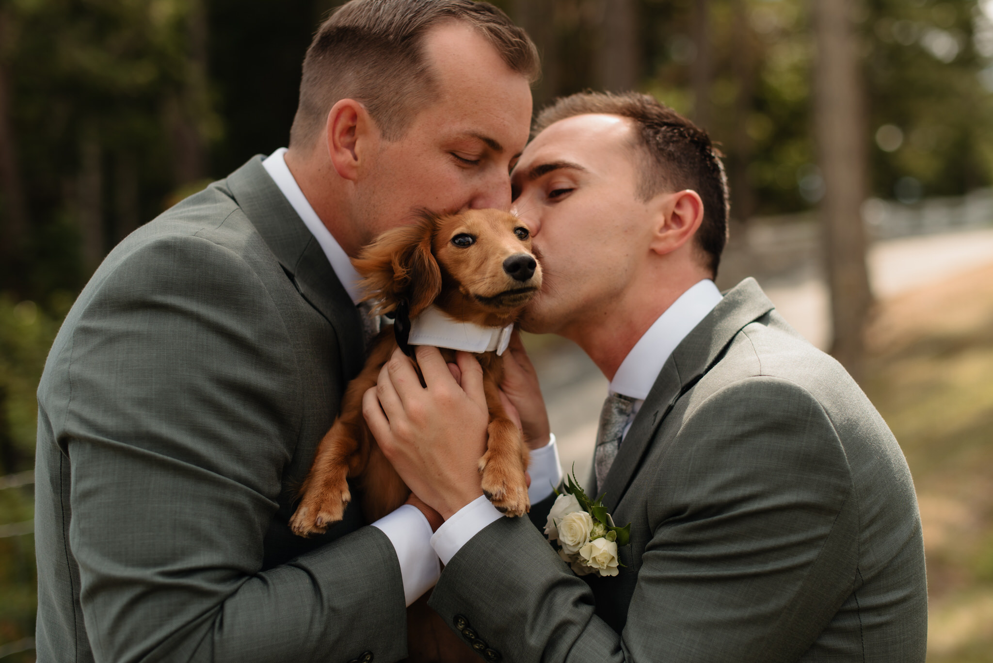 And then, there was Wilbur, their dachshund, sidekick, and undeniable star of the day. He trotted between guests like he owned the place (which, to be fair, he kind of did), popped up in photos whenever he felt like it, and soaked up every ounce of attention. I took Stefan and Joshua’s engagement photos when Wilbur was just a wee puppy 8 months prior to their wedding day.